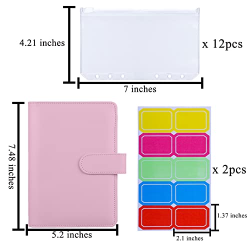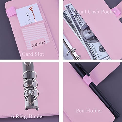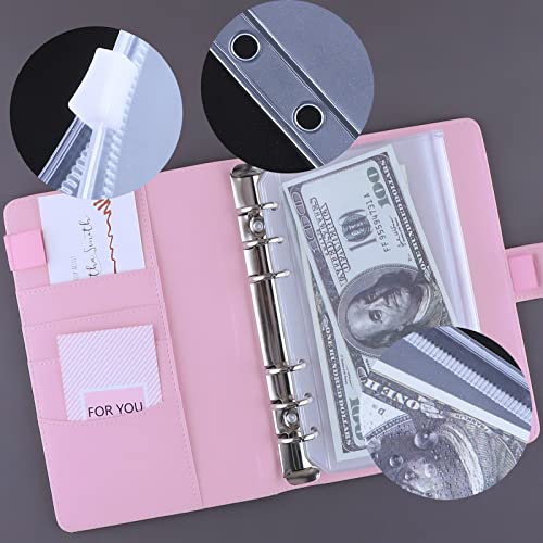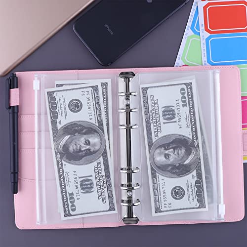 HAUTOCO Raccoglitore budget con buste con cerniera organizer per denaro contante, agenda budget con buste per risparmiare denaro, raccoglitore per risparmiare denaro con tasche ed etichette A6, rosa