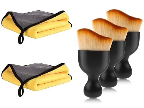 HautStore Pennello Pulizia Auto Interni,3 Pezzi Pennelli Detailing Auto Morbidi,con 2 Panno in Microfibra,Spazzole per Dettagli Interni Automatici,Spazzola per Detailing Auto,Kit Pulizia Auto
