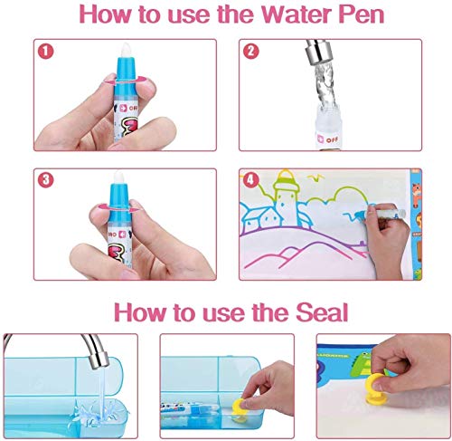 Hautton Tappeto Magico da Disegno, Tappeto Magico Bambini[100x80cm] Disegno Mat 7 Colora con 4 Penne Magiche e Francobolli, 1 Set di Stampi e Libretto di Disegni, Regalo Giocattolo per Bambini