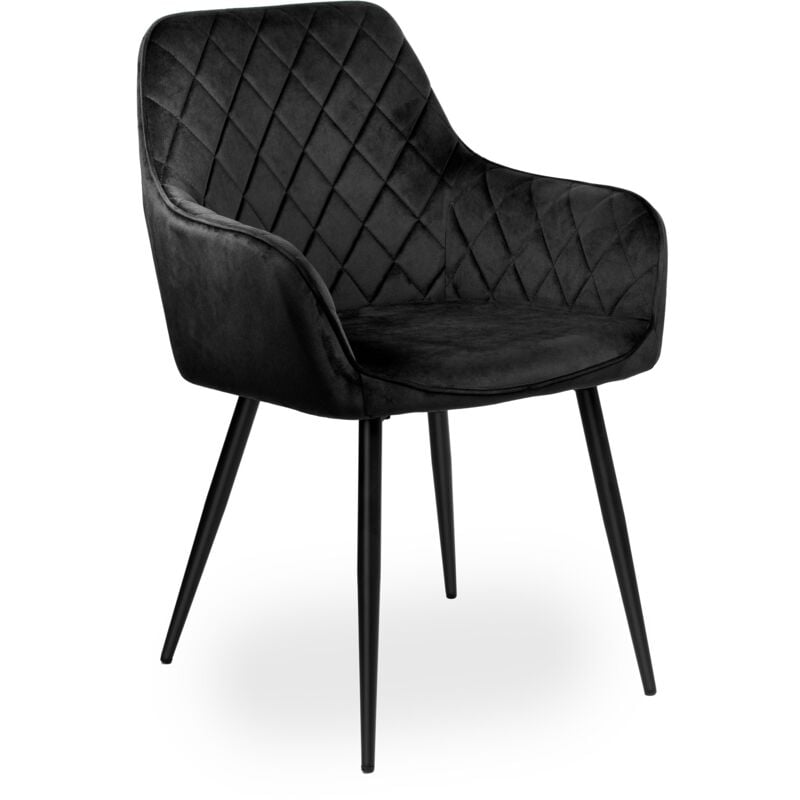 Sedia in velluto nero HAVANA VELVET Modello: HAVANA VELVET | Colore: nero Sedia imbottita e trapuntata con un interessante motivo trapuntato. Un modello interessante ed espressivo che si adatterà perfettamente ai loft o agli interni glamour, donando un'espressione leggermente calda. Il sedile è profilato e offre un comodo supporto per la schiena. La struttura in metallo della sedia fornisce un supporto stabile su qualsiasi superficie. Quando acquisti da noi, acquisti da un produttore diretto! Caratteristiche del prodotto Interessante design scandinavo Sedia imbottita Tessuto morbido con cuciture Imbottitura morbida Tessuto da tappezzeria resistente Struttura solida Perfetta vestibilità degli elementi Elevato comfort e comodità di seduta Destinato al soggiorno, alla cucina o alla sala da pranzo Materiale del rivestimento: tessuto in velluto Gambe in metallo nero Cuscinetti protettivi sotto il gambe Carico massimo 120 kg Dimensioni del prodotto Altezza sedia: 84 cm Larghezza sedia: 55