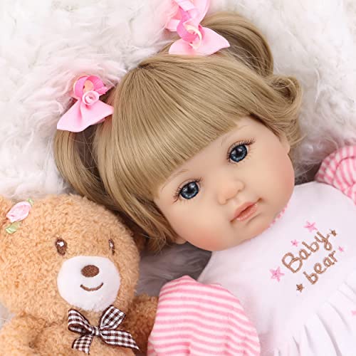 Haveahug reborn bambola baby doll 18 pollici femmine morbido arti in vinile con corpo di cotone con simpatico orso giocattolo e accessori