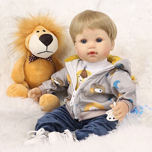 Haveahug Reborn Baby Doll 45,7 cm realistica bambola neonata con capelli biondi in morbido silicone per arti e corpo in tessuto, miglior compagno di giochi per bambini (giallo)