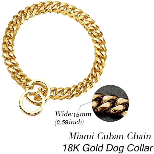 Catena per cani robusta: realizzata con collare a catena in acciaio inossidabile 304, lucidata a mano, placcata in oro 18 carati, resistente alla masticazione della catena per cani, resistente, senza ruggine, senza ossidazione per anni di utilizzo! È molto forte che non può essere smontato nemmeno con 650 libbre di forza!