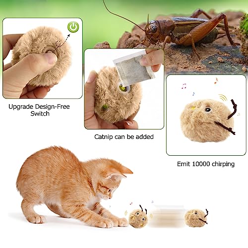 【Palle Cinguettanti】Questo giocattolo contiene una palla di peluche di 5,6 cm. Quando viene toccata emette un vivace frinire di grilli. La batteria incorporata consente a ogni pallina giocattolo per gatti una durata di 10.000 cinguettii. Le palline sono silenziose quando vengono lasciate da sole per risparmiare la batteria e continuano a frinire quando i gatti le toccano