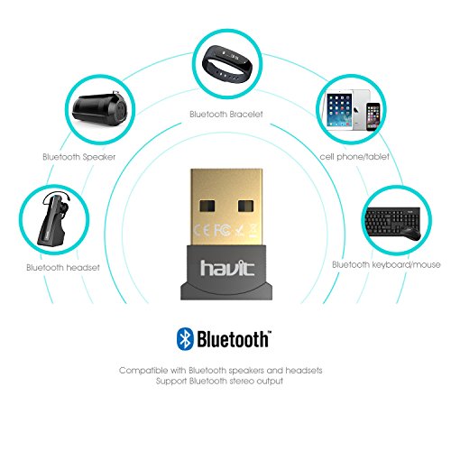 HAVIT Adattatore USB Bluetooth 4.0 USB, Ricevitore Wireless, Basso Consumo Energetico, per PC, Cuffie Stereo, Cellulare, Altoparlante (HV-888)