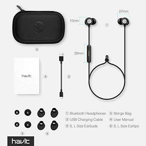 HAVIT Auricolari Bluetooth Auricolare Cuffie Bluetooth Senza Fili Sport, Wireless Impermeabile IPX5 a Prova di Sudore, Microfono Incorporato(I39,Nero)