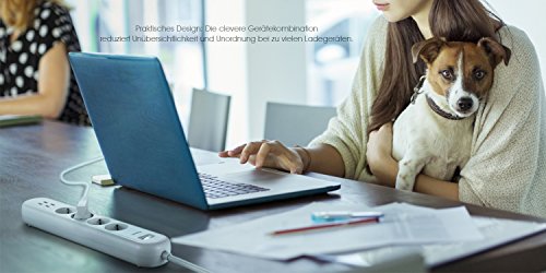 4 prese e 4 USB di ricarica intelligente AC multiple in una ciabatta, adatto per la ricarica simultanea di smartphone, tablet, Scrivania lampada, Computer e altri dispositivi.
