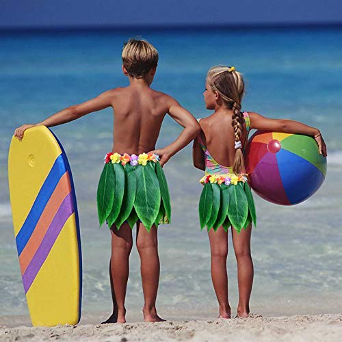Hawaiian Hula Hawaiano Gonna Foglia di Hula Gonne Set di 5 Pezzi Hawaiani Include Fiore Leis Collana Fascia Bracciali Luau Gonne per Bambini Hawaii Costume Tropicale Luau Birthday Party Supplies