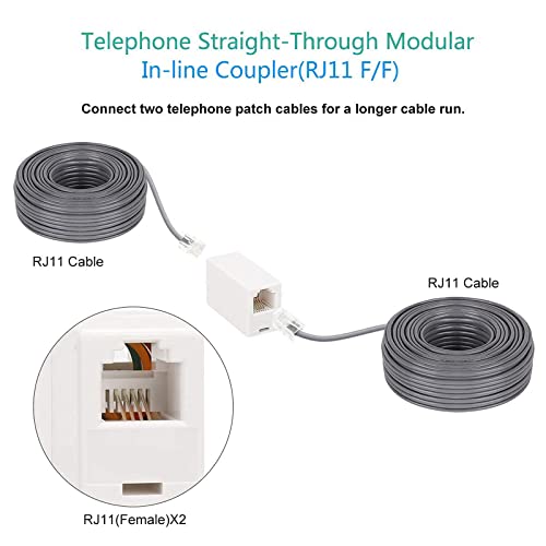 Accoppiatore Rj11 Accoppiatore Telefonico In Linea Rj11 6P4C Adattatore Accoppiatore Cavo Prolunga Telefonica Adattatore Linea Telefonica Femmina A Femmina 2 Pezzi (Bianco)