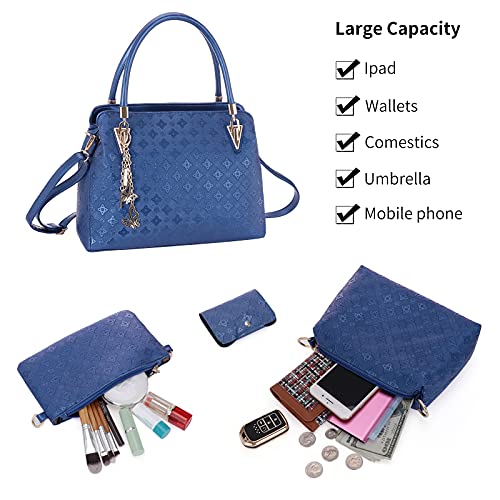 【Materiale di Set da 4 Pezzi】: Il tessuto di questo set da 4 pezzi è realizzato in pelle PU di alta qualità e fodera in poliestere, durevole e impermeabile, altamente resistente a graffi e strappi. Borsa a mano grande è dotata di caratteristico ciondolo hardware, che è alla moda ed elegante