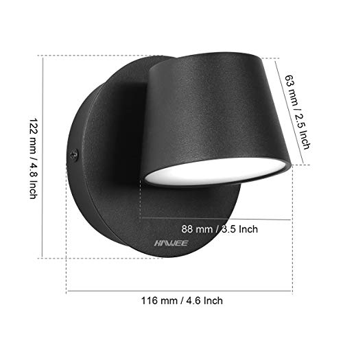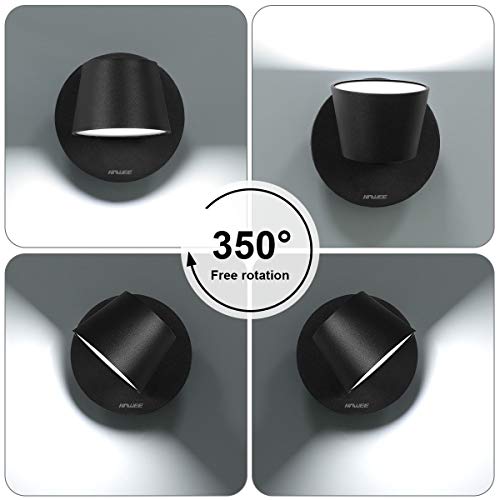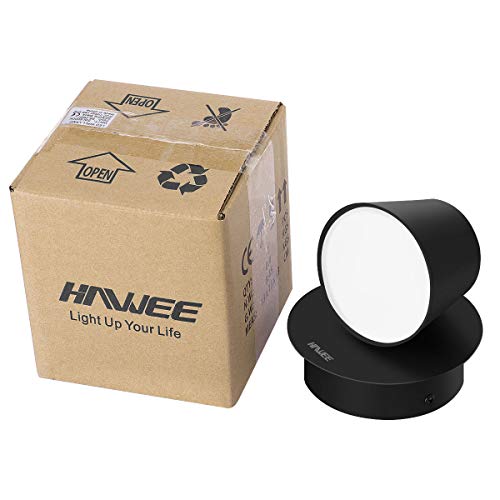 HAWEE Moderna Applique da Parete LED Lampada da Lettura da Parete 350° Orientabile Stile Nordico Faretto da Parete LED Lampada da Parete per Camera da Letto Soggiorno Corridoio Scale, Nero 6000K