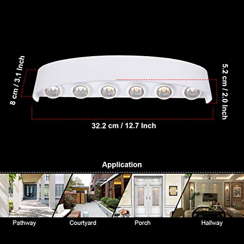 HAWEE Moderno Applique da Parete LED Lampada da Parete Impermeabile Alluminio Lampada da Muro Interno Esterno per Camera da Letto, Bagno, Portico, Corridoio, Scale, Soggiorno, 12W Bianco