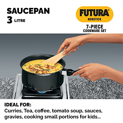 Hawkins Futura Pentole Antiaderente 7 Pezzi Set (QS5), 2 LTR, 3 LTR, 3,25 LTR, Nero (NSET4)