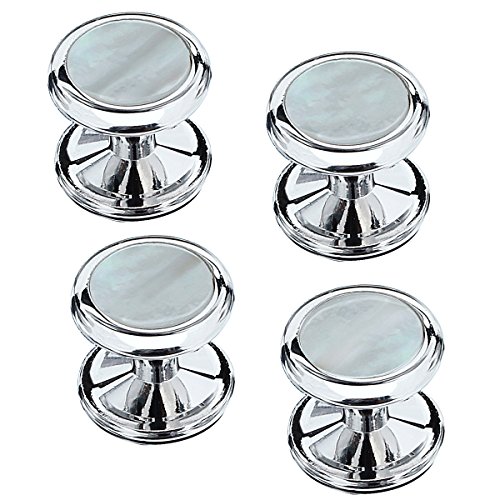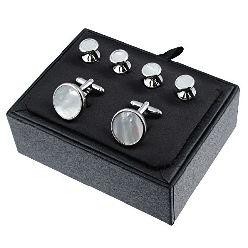 HAWSON, set di bottoni e gemelli in madreperla, per camicia da uomo, per matrimonio e lavoro e ottone, colore: 4-Silver, cod. 400161