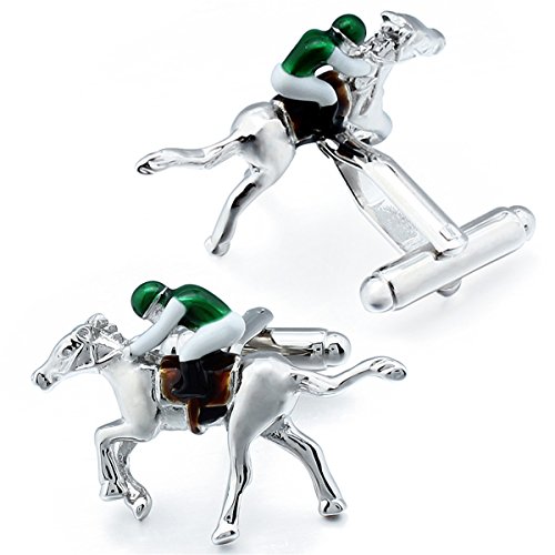 Hawson, gemelli da uomo, a forma di fantino a cavallo, colore giallo, verde e rosso