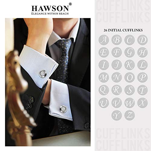 HAWSON Iniziali da uomo A-Z formale da sposa smoking camicia da uomo classico argento gemelli/fermacravatta, Metallo