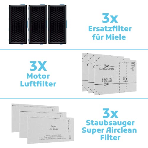 HAYATEC 3 filtri HEPA compatibili con aspirapolvere Miele s8340 con filtro Air Clean e motore per Compact C1 C2 Complete C2 C3 S4000 S5000 S6000 con carbone attivo