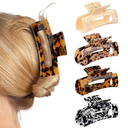 HAYHOI 4 fermagli per capelli in acrilico a banana, clip per capelli in celluloide con farfalla francese, clip a forma di tartaruga, con chiusura a morsetto, per donne e ragazze, 4 pezzi