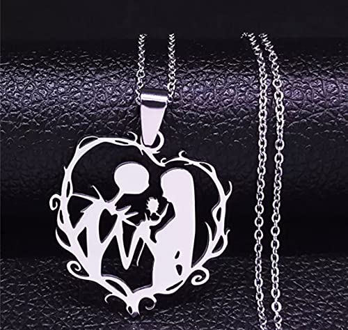 HAYOUWAY Jack & Sally - Collana Nightmare Before Christmas con ciondolo a forma di cuore, per compleanno, Halloween, San Valentino, regalo per donna e fidanzata