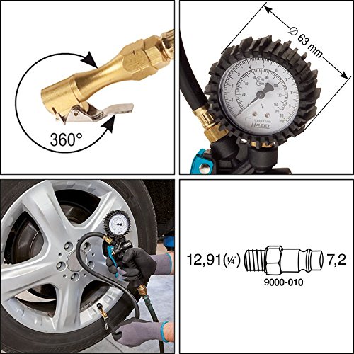Hazet 9041-2 Strumento per Controllo Pressione Pneumatici, Tarato, Argento