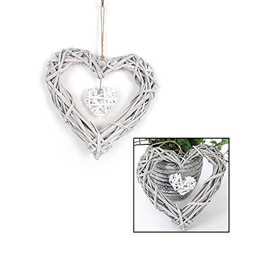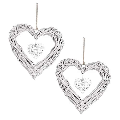 Il set include: Un totale di 2 decorazione a forma di cuore in vimini.