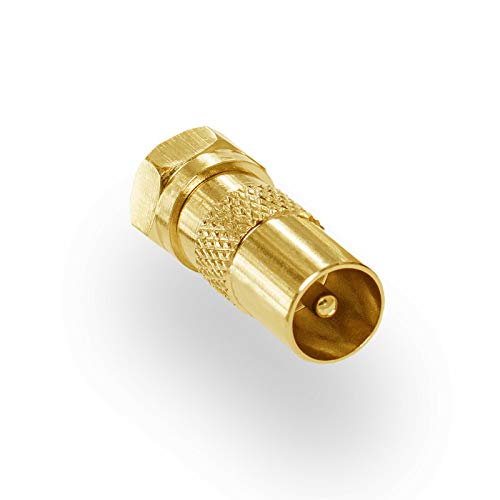 Hb-digital 1x adattatore antenna SAT: connettore F (connettore satellitare DVB-S/S2 mas.) a connettore IEC (connettore TV via cavo DVB-C, DVB-T2 terrestre, mas.) Connettore TV coassiale placcato oro