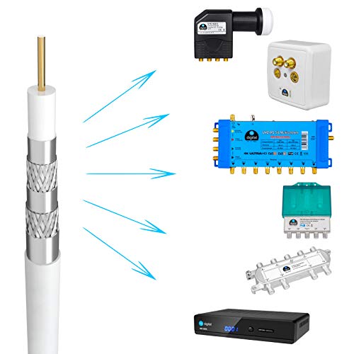 per la posa / il collegamento / l'estensione / la distribuzione o il rinnovo tra TV - sintonizzatore TV - box antenna SAT - ricevitore digitale - LNB - multi-switch