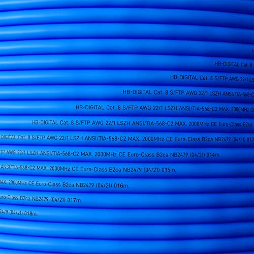 HB-DIGITAL 25m Cat 8.1 cavo di rete cavo di installazione cavo dati Ethernet LAN Cat.8 fino a 40 Gbit/s rame S/FTP 2000 MHz PIMF LSZH Cat8 senza alogeni conforme RoHS AWG 22/1 blu, per Router, Server