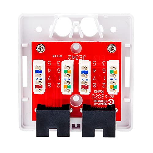 Presa di rete compatta Cat.6 Classe E 250 MHz con doppia presa RJ-45 (2 porte) di HB-Digital - Unità di collegamento universale (UEA) - Bianco puro - Presa di collegamento per uno scambio stabile di dati/flussi di dati