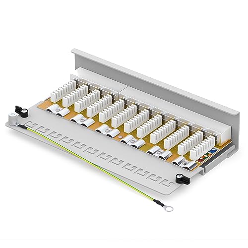 HB-DIGITAL Patch panel LSA Cat 6 a 12 porte, patch panel, schermato, bianco Pannello di distribuzione 250MHz desktop tavolo e montaggio a parete 12 prese RJ45, cavo di messa a terra TIA568A o TIA568B