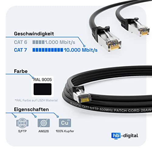 HB-Digital 0,5m Cavo patch Cavo di rete LAN CAT.7 S/FTP PIMF 2xRJ45 in rame LSZH senza alogeni Conforme a RoHS 10 Gbit Porta Ethernet 600 MHz Internet DSL PC router switch modem TV nero
