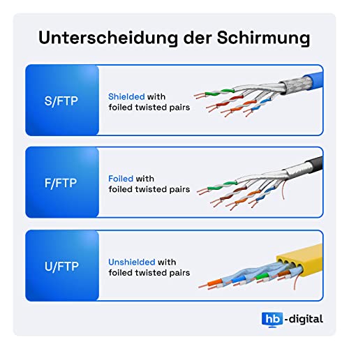 Cavo di rete CAT.8.1 nero - 25 metri - Cavo patch di categoria 8 con la migliore qualità della casa di HB-Digital. La schermatura S/FTP (PIMF) di prima classe e il guaina LSZH consentono di posare il cavo come desiderato.