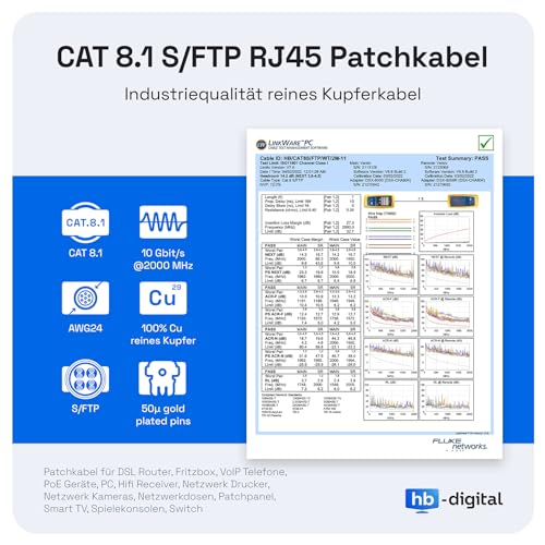 Il cavo LAN Cat 8 (standard 8.1, classe 1) con 2 connettori RJ45 con protezione antipiega e leva di bloccaggio si adatta perfettamente alle diverse prese RJ45 e Cat.5/5e Cat.6/6a Cat.7/7a Cat.8. Questo rende il cavo la soluzione più flessibile e sicura per lo scambio di dati