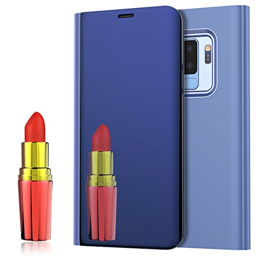 HB-Int Custodia Samsung S9 PlusSpecchio Clear View Standing Cover Flip Case 360 Gradi Protezione Case in Pelle e Plastica per Samsung Galaxy S9 Plus Blu