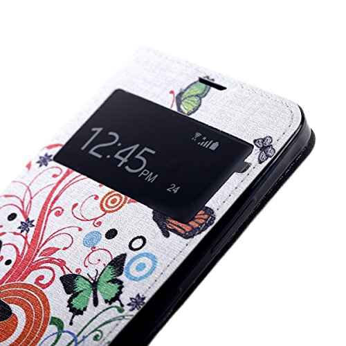 HB-Int 4 in 1 Farfalla Blanc Finestra Flip Custodia Case per Nokia Lumia 640 Protettiva Portafoglio Stand Accessori Colorato Case Modello Custodia Book Style Magnetico Flip PU Portafoglio Leather cassa interna e Supporto Funzione + Pennino + Spina della Polvere + HD Protezione dello Schermo