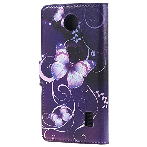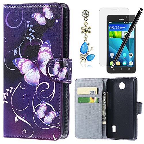 HB-Int 4 in 1 Farfalla Viola Modello Custodia per Huawei Ascend Y635 Protettiva Portafoglio Stand Cover Colorato Case Accessori Book Style con PU cassa interna e Supporto Funzione + Pennino + Spina della Polvere + HD Protezione dello Schermo