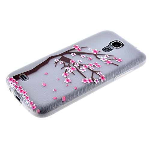 HB-Int 4 in 1 Luminosa Custodia Morbida TPU Fiore Plum per Samsung Galaxy S4 Mini i9190 Nottilucenti Effetto Gel Silicone Protettivo Anti Graffi Trasparente Back Copertura Skin Shell Cover Case Disegno Speciale+ 1 x Stilo + 1 x HD Protezione dello Schermo +1 x Spina della Polvere