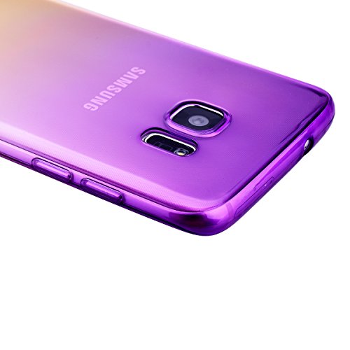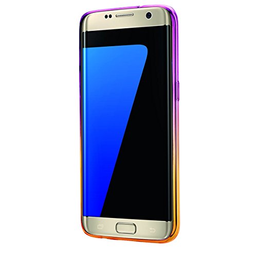 HB-Int 3 in 1 Trasparente Cover per Samsung Galaxy S7 Edge Nuovo Disegno Custodia Due Colori Case Flessibile TPU Silicone Caso Ultra Sottile Leggera Copertura Anti Graffi Back Cover Custodia Protettiva Cassa Bumper Case Skin + Pennino + Spina della Polvere (Giallo Viola)