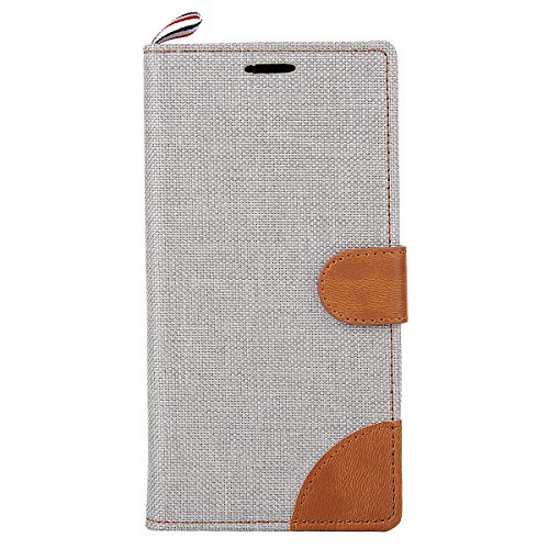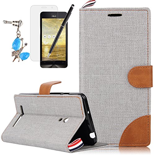 HB-Int 4 in 1 Asus Zenfone 5 A500KL 5.0" Smartphone Semplice Cover Tessuto Denim Grigio Copertura Colorato Case Accessori Book Style con PU cassa interna e Supporto Funzione + Pennino + Spina della Polvere + HD Protezione dello Schermo