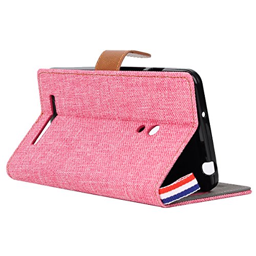 HB-Int 4 in 1 Asus Zenfone 5 A500KL 5.0" Smartphone Semplice Cover Tessuto Denim Rosa Copertura Colorato Case Accessori Book Style con PU cassa interna e Supporto Funzione + Pennino + Spina della Polvere + HD Protezione dello Schermo