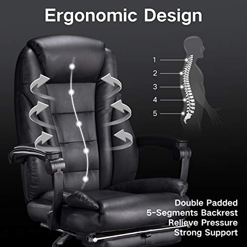 Hbada Sedia da Ufficio Sedia da scrivania Sedia direzionale Sedia Girevole Sedia ergonomica per Computer Finta Pelle con poggiapiedi Nero