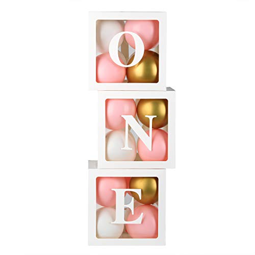 HBBMAGIC 3PCS White Blocks Square Baby Shower Boxes Kit Decorazioni per feste per Boy & Girl Gender Reveal Balloon Decorative Blocks (ONE, 18PCS Ballon, 3PCS Letters)