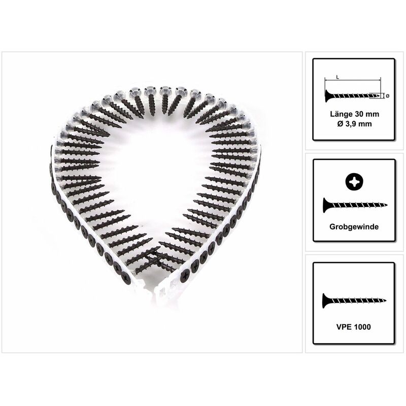 Dotazione: - 1000x Technofast HBGF3930TE Viti per cartongesso 3,9 x 30 PH2 filettatura grossa Descrizione prodotto: Le viti per caricatori Technofast HBGF3930TE sono adatte per l'avvitamento nel cartongesso. Le viti a nastro sono progettate per gli avvitatori con caricatori e le loto punte affilate garantiscono un rapido avanzamento del lavoro. Sono compatibili con quasi tutti i comuni avvitatori con caricatore. Dati tecnici: Attacco: PH Phillips misura 2 Testa della vite: testa a tromba Punta: appuntita Lunghezza della cinghia: 50 viti DIN EN 14566:2009 + A1:2009