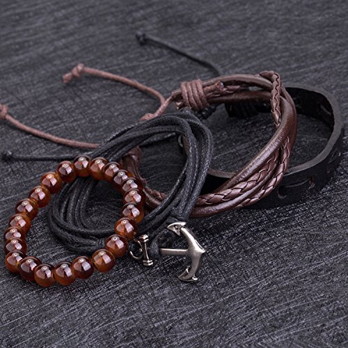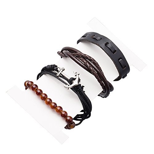 HBselect Un Set da 4 Braccialetti Uomo Accessori per Uomo in Stile Punk Bracciali Eleganti Cuoio