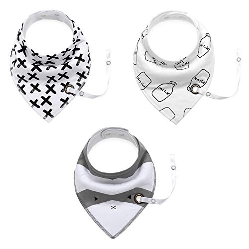 HBselect 3 pezzi Bavaglini Bandana Bimbo in Cotone Morbido Bavaglini Neonato con Catenella Portaciuccio Bavetta Neonato Assorbente (1)