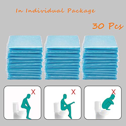 DIMENSIONE: Il pacco include 30 pezzi copriwater usa e getta di 65 x 60 cm, adatto per la maggior parte dei sedili del water. Design estesa protegge le gambe o i pantaloni da bagnato e sporco.