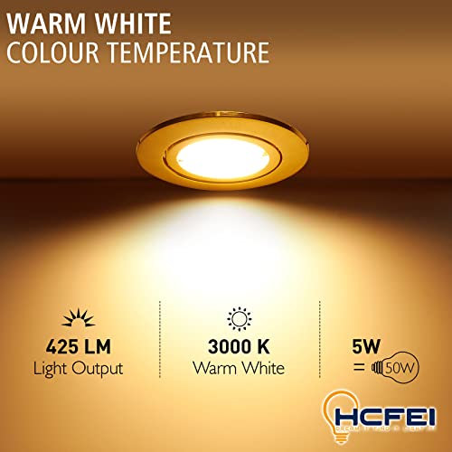 HCFEI 10x Faretto da incasso a LED Dorato, Dimmerabile, Orientabile, 230V 5 W, foro incasso Ø 68 mm, angolo di diffusione di 120°, Bianco caldo 3000K