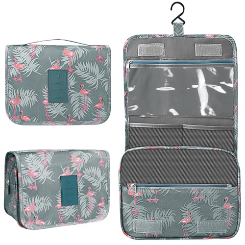 HCFGS Borsa da toilette da appendere - Borsa da bagno portatile da viaggio, organizer per cosmetici per uomini e donne impermeabile da bagno per viaggi d'affari, palestra, vacanze e casa, Grigio