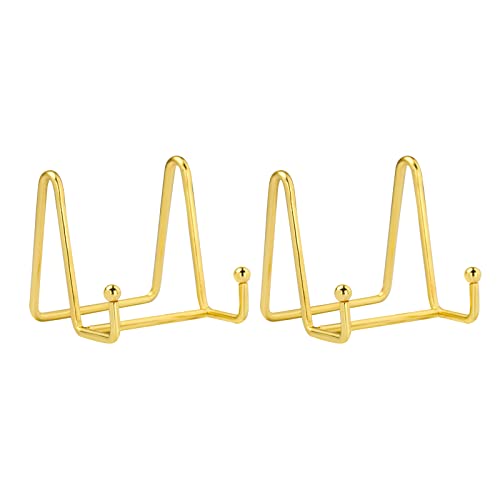 HCHLQLZ 3 * 3 Pollici Ferro Supporto Cavalletto Decorativo per Foto, Piatti, cornici, Libri di Cucina, Piatti Decorativi, Tablet e Arte, Oro 2 Pezzi