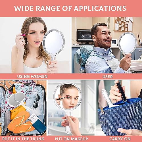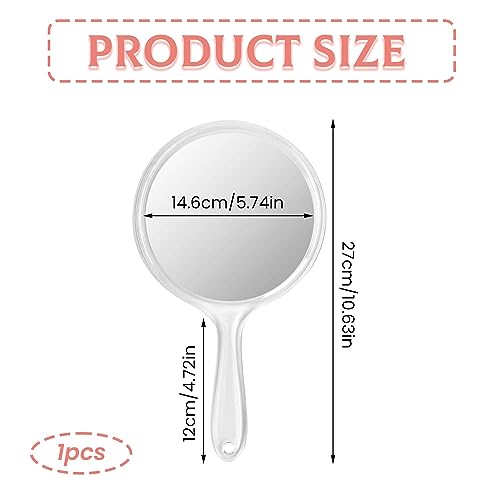 Dimensioni compatte: il diametro della superficie dello specchio è di 14,6 cm e la lunghezza totale di 27 cm, adatta per il trasporto in una borsa. Quando non in uso, lo specchio a mano può essere appeso alla parete per risparmiare spazio, incluso specchio piccolo.